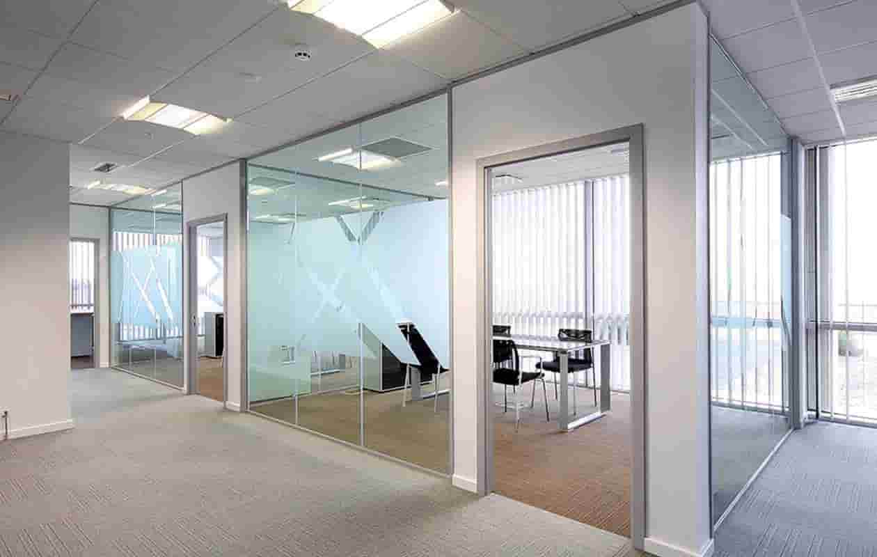 Aluminium partitions offer a sleek, modern look with high structural integrity. Ideal for corporate offices and industrial setups, they combine metal framing with glass or board infill for versatile zoning.